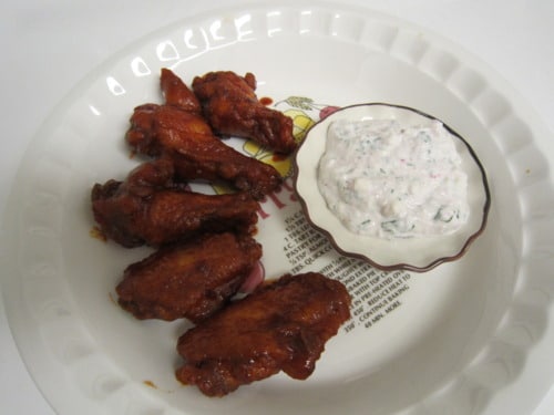 - 2 pounds chicken wings split at the joint, wing tips removed and discarded (this was about 16 pieces for me)