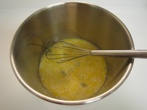 In a second bowl, whisk together egg, milk, canola oil, and vanilla.