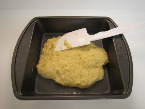 Spread batter evenly into prepared pan, and set aside. (The batter was very sticky and thick for me so it took some time to spread it all out.)