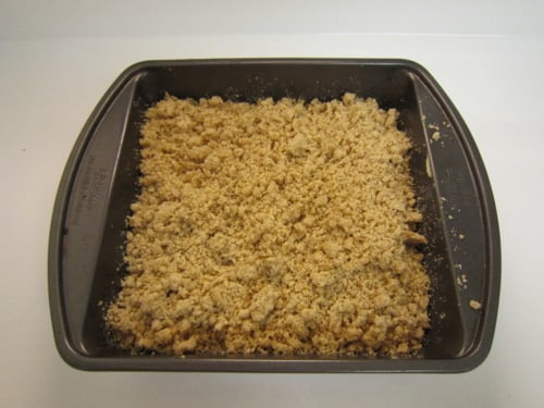 In a medium bowl, combine remaining 1 1/4 cups flour, brown sugar, and cinnamon. Pour melted butter over flour mixture, and toss with a rubber spatula until large crumbs form. (I was a bit worried that the crumbs weren’t brown enough but thankfully, it darkened a bit in the oven.)
