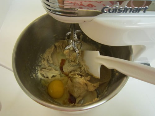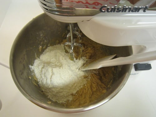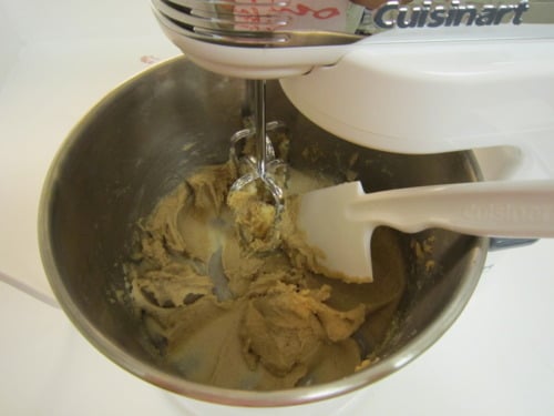 In the bowl of an electric mixer fitted with the paddle attachment, cream butter and sugars until light and fluffy, about three minutes.