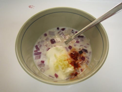 - 3 tablespoons finely chopped red onion