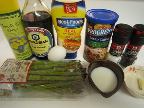 Panko Crusted Asparagus with Soy Garlic Aioli (adapted from For the Love of Cooking):