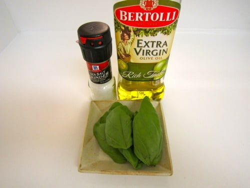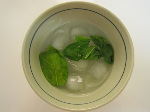 In a small saucepan, bring 2 cups of water to a boil. Add the basil leaves all at once, stirring to make sure they are all submerged.
