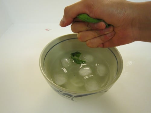 Remove the leaves from the ice bath and squeeze firmly in your hands to release as much liquid as possible.