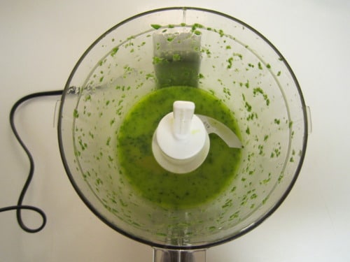 Process until the leaves are finely pureed, about 1-2 minutes.