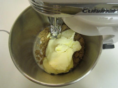 In the bowl of an electric mixer fitted with the paddle attachment, cream butter and sugars until mixture is light and fluffy, about 2 minutes.