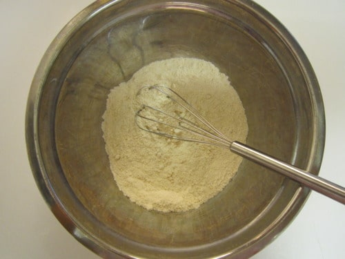 In another bowl, whisk together the flour, almond flour, baking soda, and salt.