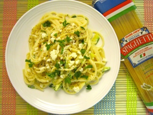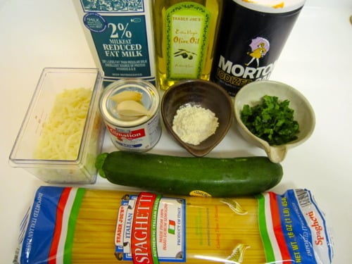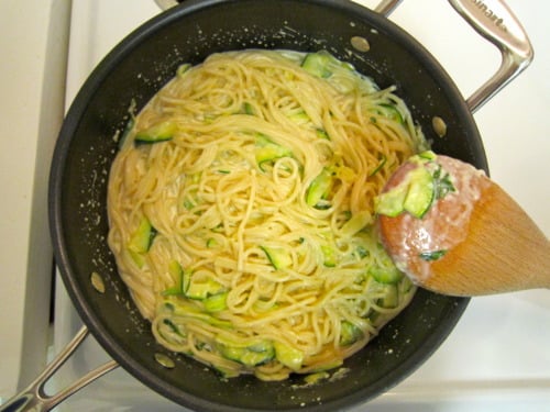 Spaghetti Alfredo with Zucchini Ribbons (adapted from Ellie Krieger):