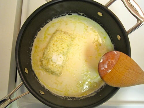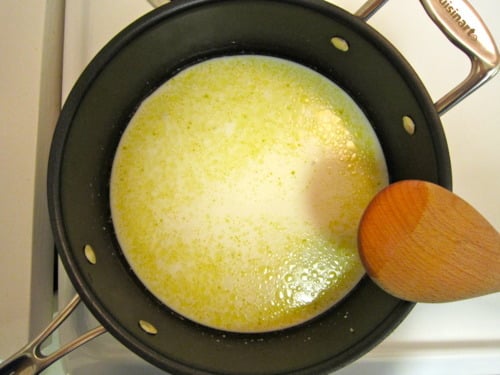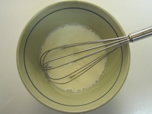 Meanwhile, make the sauce. Stir the flour into the milk until completely dissolved.