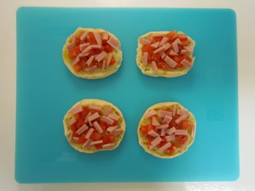 English-Muffin Breakfast Pizza (adapted from Ellie Krieger):