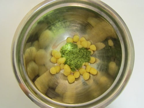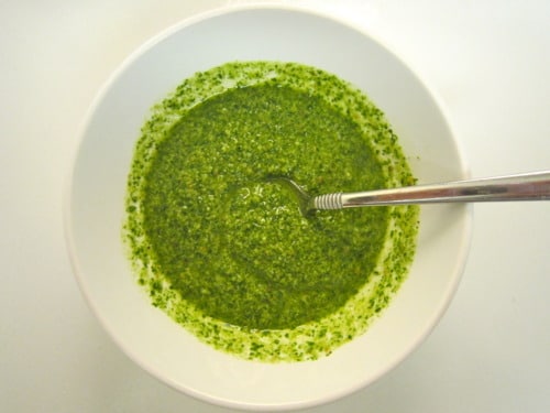 This was the freshest pesto of all, especially since I used the basil leaves right from my own garden. The basil taste was strong but balanced very well with the arugula and it went perfectly with the tender gnocchi. I can’t wait to make this pesto again to make a pesto pasta salad.