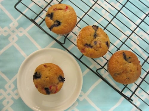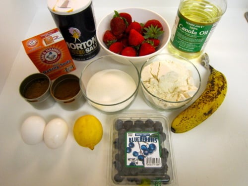 Strawberry Banana Blueberry Lemon Muffins (adapted from Sunny Anderson):