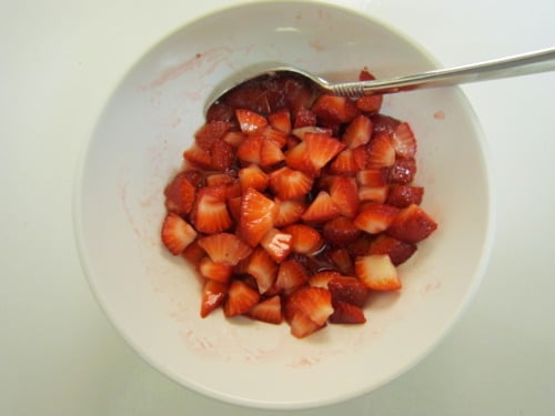 In a small bowl, mix together strawberries and 2 tablespoons sugar. Let sit 15 minutes until strawberries give off juices.