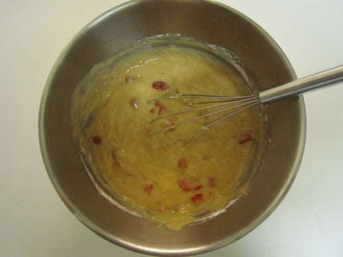 Mix dry ingredients into wet ingredients until combined. (Do not over mix.)