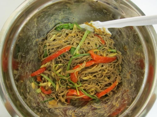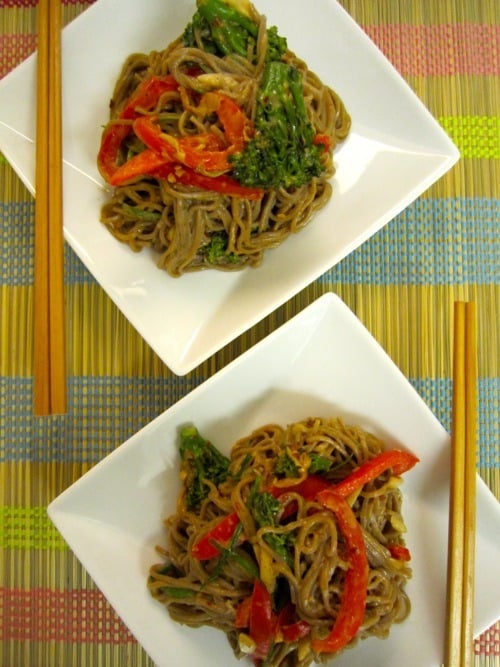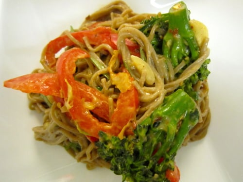Soba Noodle Stir-Fry with Spicy Almond Butter Sauce (adapted from Brown Eyed Baker):