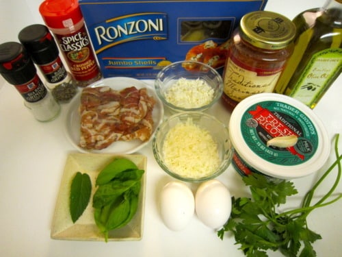 - 1/2 package jumbo pasta shells (about 16 shells)
