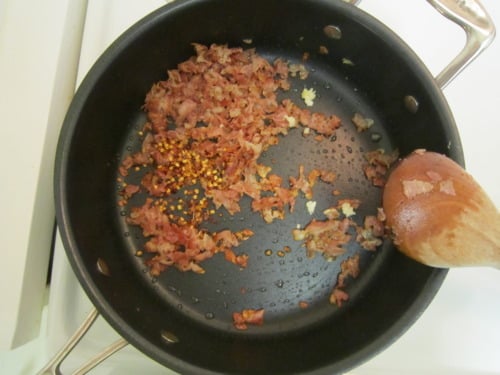 Add red pepper flakes and garlic. Saute until tender, about 1 minute.
