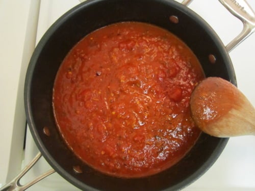 Since I loved the Shells with Crispy Pancetta and Spinach, I decided to make stuffed shells again but with a marinara-based sauce instead. I’m not really a marinara person but I decided to make this particular recipe because of the pancetta. But surprisingly enough, I absolutely loved this sauce! The red pepper flakes gave it that nice spicy kick to it and the pancetta made it more salty but it was very well balanced with the fluffy ricotta in the shells. I’ll be sure to make this again with homemade roasted tomato marinara sauce next time around.