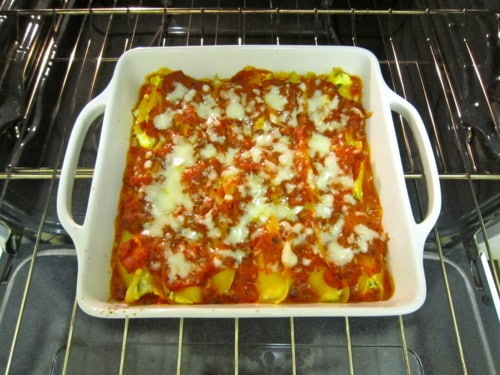 Place into oven and bake in the lower third of the oven until the filling is heated through and the top is golden brown, about 25-30 minutes.