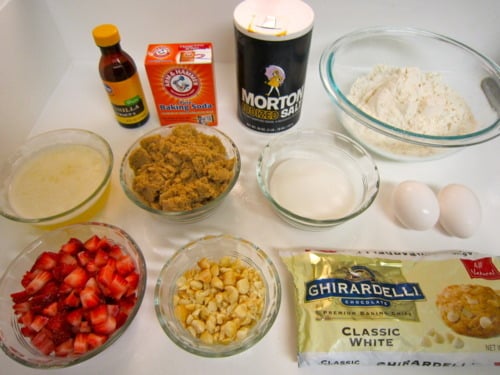 The boyfriend loves the white chocolate macadamia nut cookies from Diddy Riese so I thought I would try to recreate them. But as I was making them, I realized that I didn’t have enough macadamia nuts and I wasn’t really in the mood to go to the store so I decided to add in some strawberries. It was such a wonderful addition since it didn’t take away from the original ingredients and it was still bold enough to give it that sweet, fruity kick. The boyfriend absolutely loved it and vowed to eat them all!