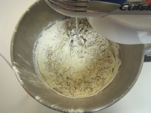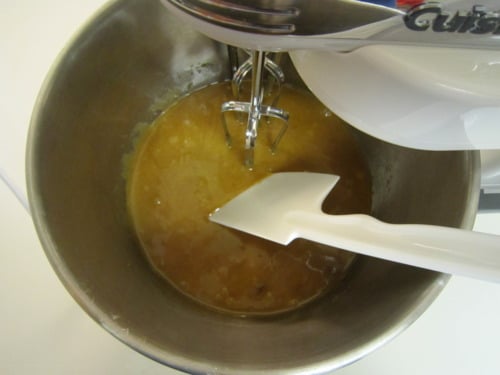 Gradually add flour mixture to the sugar mixture, beating just until incorporated.