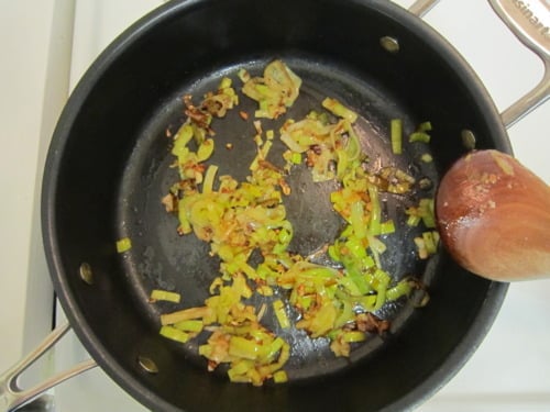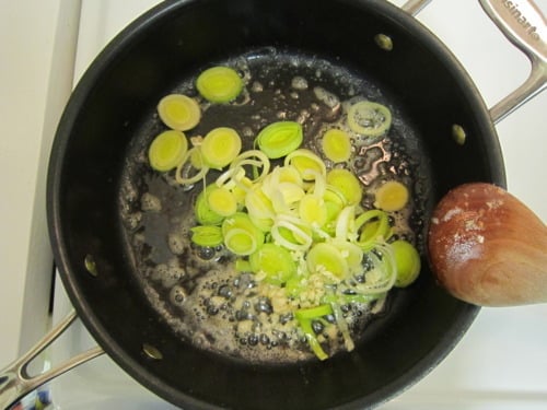 - 1 large leek, white and light green parts only, thinly sliced (Trader Joe’s sells already trimmed leeks)