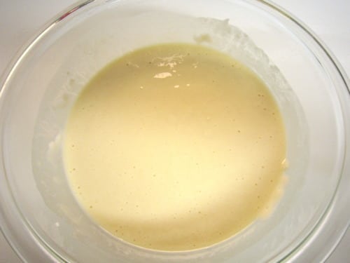 Scoop a scant 1/4 cup of the batter into the pan or onto the griddle and cook until bubbles appear on the top surface and the bottom is golden brown, about 1 to 1 1/2 minutes.