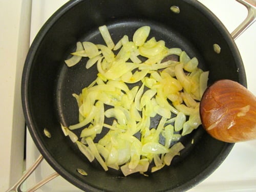 Heat 1/2 tablespoon of olive oil in a large skillet over medium heat. Add the onion and cook, stirring often, until caramelized and tender, about 15 minutes. (The longer they cook, the more they will caramelize.) Remove from the pan and set aside.