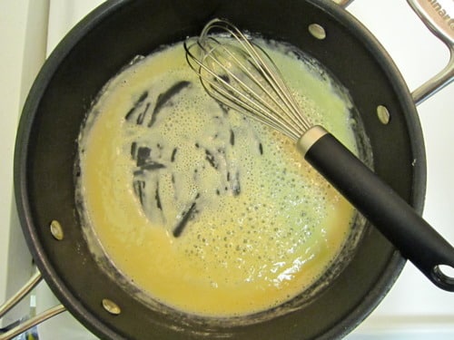 Once the butter has melted, whisk in the flour to form a paste. Cook, whisking constantly, until light golden brown, about 1-2 minutes.
