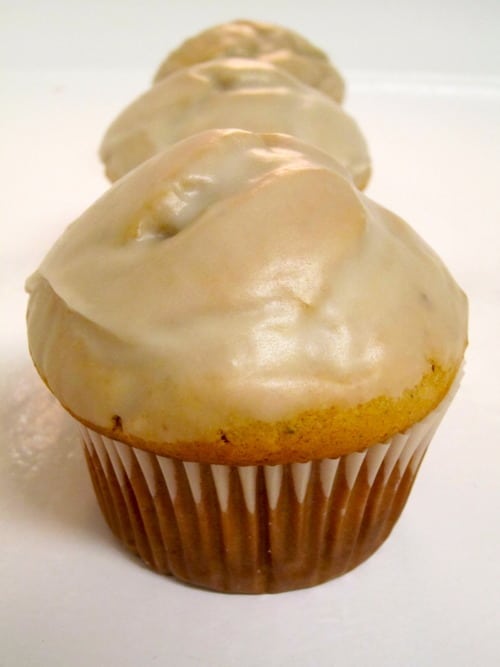 When the muffins are done, cool for 10 minutes and dip the muffin crown into the glaze.