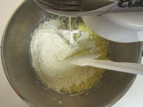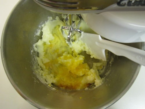 Beat in lemon zest, egg, vanilla and lemon juice at medium speed until well combined, about 30 seconds.