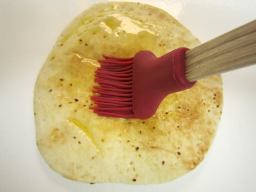 Brush both sides of pita with olive oil.