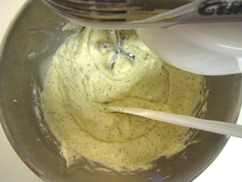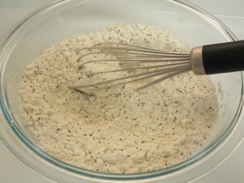 In a medium bowl, combine the flour, poppy seeds, baking powder, baking soda and salt; set aside.