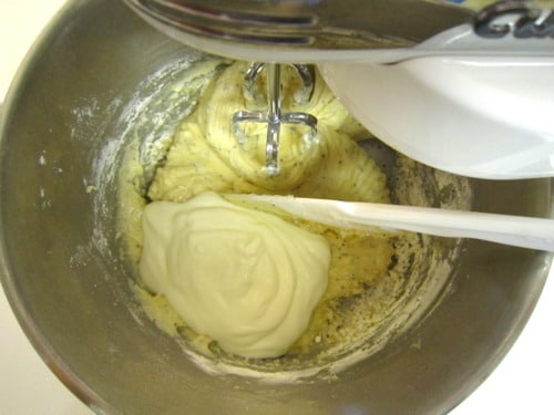 Alternately add flour mixture and yogurt, beginning and ending with the flour, until just combined.