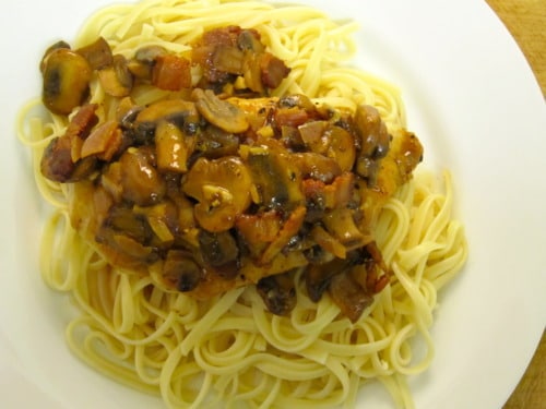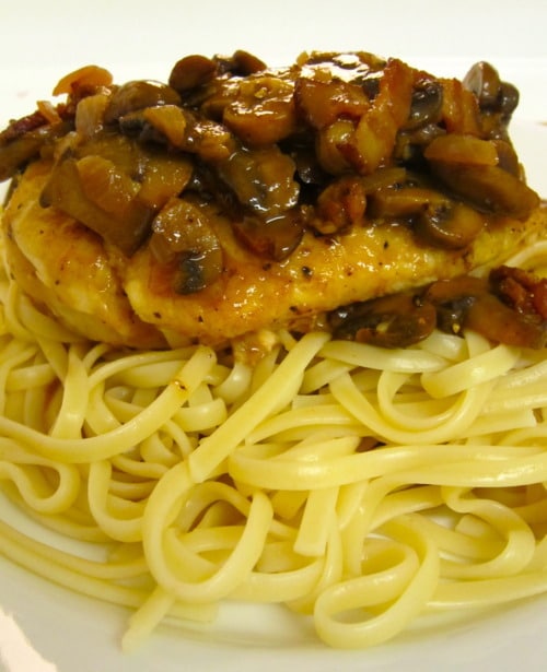 Spoon the sauce over the chicken and serve immediately with pasta, if desired.