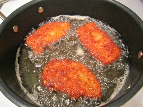 Working in batches, add the cutlets to the hot oil 2 or 3 at a time and fry until evenly golden brown and crispy, about 3-4 minutes on each side.