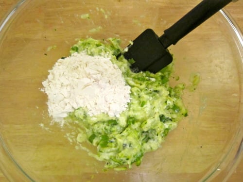 In a large bowl, combine the zucchini, garlic, scallions, ricotta, egg, lemon zest, salt and pepper, to taste.