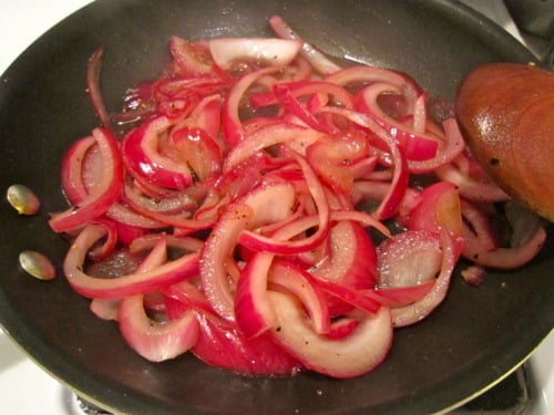 Heat 1 teaspoon olive oil in a medium skillet over medium high heat. Add onion, and cook until softened, about 2 minutes. Season with salt and pepper, to taste.