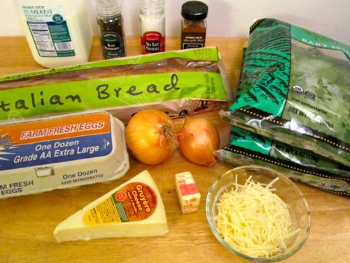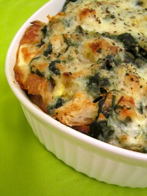 Spinach and Cheese Strata (adapted from Annie’s Eats):