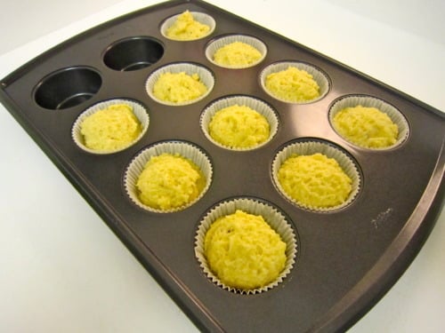 Line a 12-cup standard muffin tin with paper liners; set aside. (If you don’t want to use paper liners, you could coat a muffin pan with cooking spray instead.)