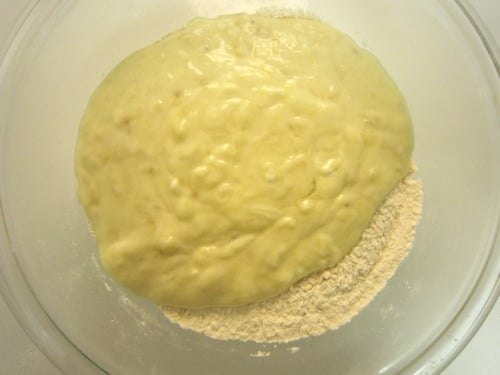 Pour mixture over dry ingredients and stir using a rubber spatula just until moist.