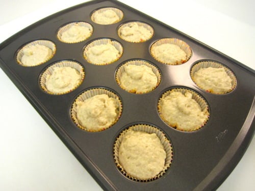 Line a 12-cup standard muffin tin with paper liners; set aside. (If you don’t want to use paper liners, you could coat a muffin pan with cooking spray instead.)