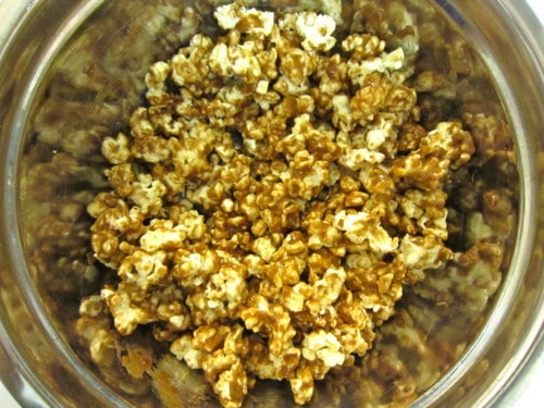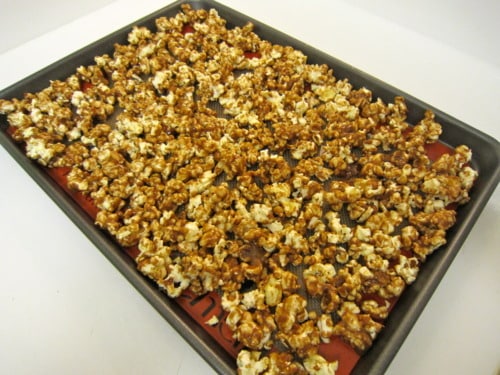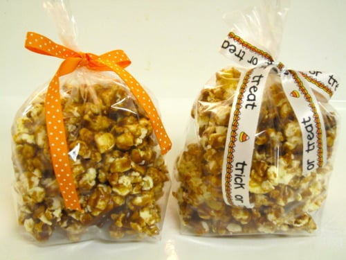 Still looking for last minute Halloween treats to serve? Well look no further because here is the simplest, quickest, yet most delicious treats ever made in just 15 minutes, maybe even less. All it takes is some microwavable popcorn and a homemade caramel sauce of brown sugar, butter, corn syrup, vanilla, and baking soda, that takes about 6 minutes to make. Once the caramel is slathered all over the popcorn, it’s baked in a low oven for 10 minutes, infusing the caramel flavor into each individual popcorn. Once it cools, the popcorn hardens, making it a very inexpensive, delicious caramel popcorn that tastes 100 times better than movie theater caramel popcorn. Best of all, you can put these in little baggies with decorative ribbon and give them away to family and friends. There’s no doubt that they won’t like it. They’ll probably be begging you for more!