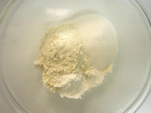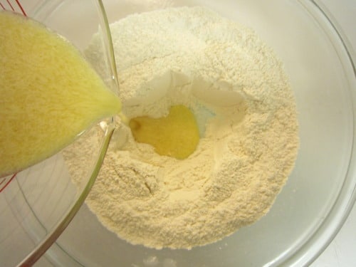 In a large bowl, combine the flour, salt, baking powder and sugar.