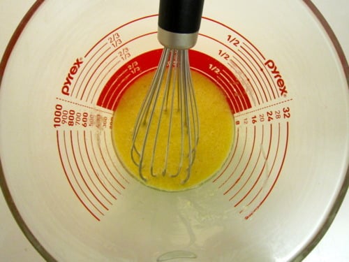 In a large glass measuring cup or another bowl, whisk together the canola oil, egg, buttermilk and vanilla.