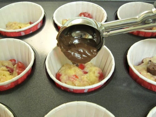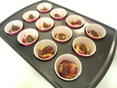 Drop 1-2 teaspoons of Nutella filling into the center of each cup.