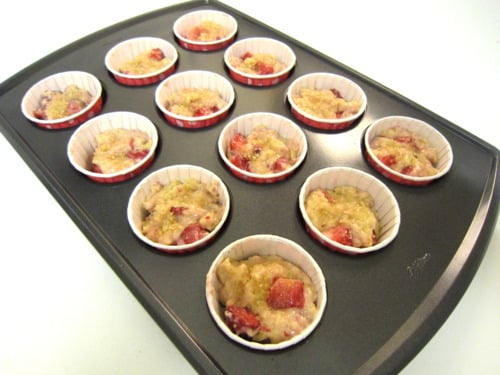 Line a 12-cup standard muffin tin with paper liners; set aside. (If you don’t want to use paper liners, you could coat a muffin pan with cooking spray instead.)
