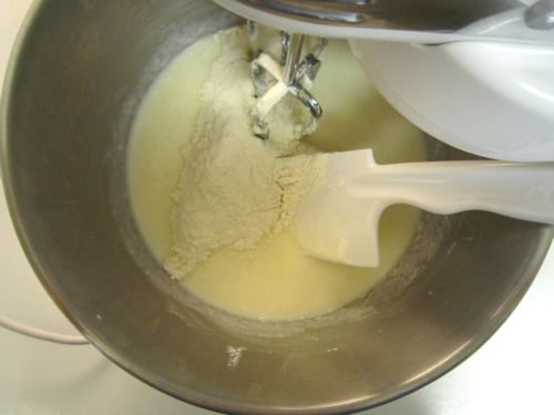 Gradually add flour mixture to the sugar mixture at low speed, beating just until incorporated.