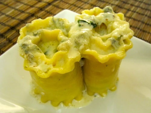 Spinach and Mushroom Lasagna Roll-Ups with Gorgonzola Cream Sauce